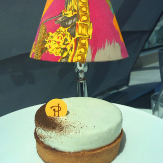 Cuando llegó la hora del postre no sabíamos qué pedir, la mesa de al lado había pedido unos hot cakes y moríamos por probarlos, se veían súper esponjosos. Sin embargo, en el menú había también una tarta de vainilla de Pierre Hermé, el chef de postres franceses por excelencia; así que dude y dude, pedí la tarta, luego la cancelé y pedí hot cakes, luego los cancelé y pedí mejor la tarta, ¡Dios mío, qué buena decisión! Esta tarta era como si me hubieran dado una tartaleta rellena de macaron de vainilla, estaba fría, olía buenísimo, se derretía delicioso en tu boca, estuve a punto de no compartirla con Julio de lo buena que estaba.