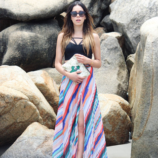 On Saturday morning we woke to a super rainy and cloudy weather and we were afraid that whole day was ruinned! Luckily the day improved completely, it was a hot and sunny day. Andrea and I took out our matching outfits and we walked around the hotel looking for the perfect spots for our photos. (You can watch our amazing looks here) That day was the best, we went to the beach, Julio went surfing, we were around the pool eating coconut and at evening we went out to enjoy Acapulco, Best Day EVER!